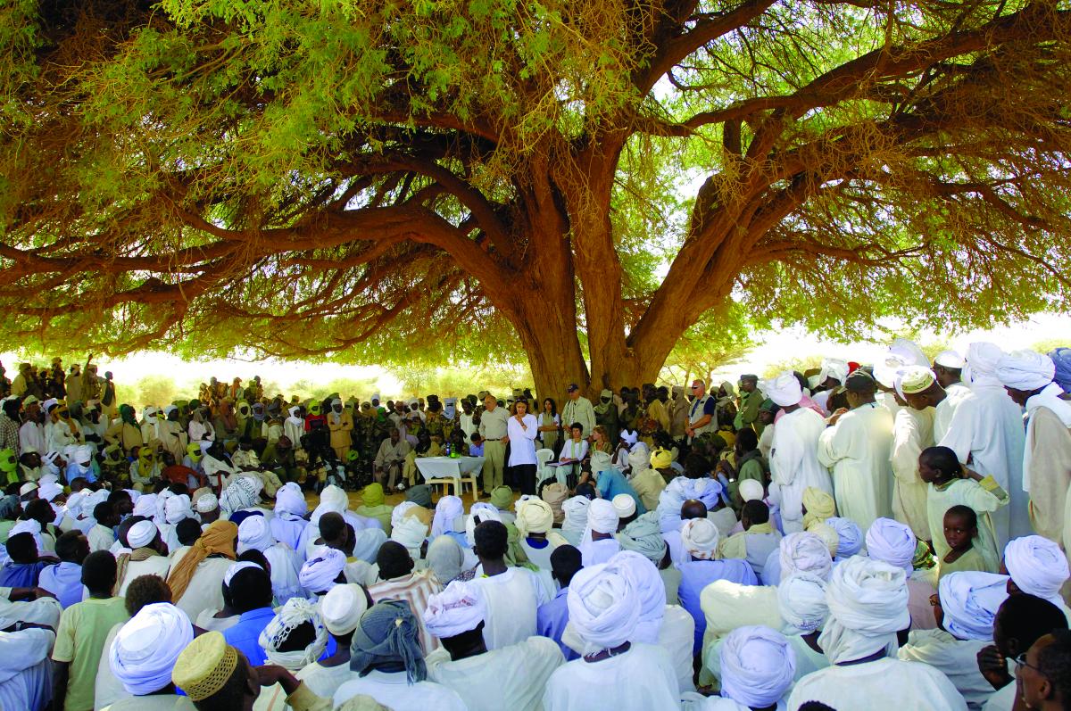 Photo: Jan Pronk, former head of the United Nations Mission in Sudan, urges members of the Sudan Liberation Army to engage in peace talks. © UN Photo/Fred Noy.