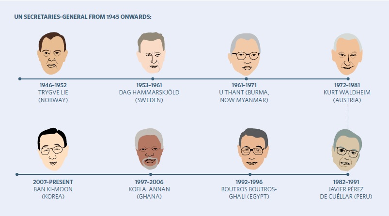 Peacekeeping, for example, was developed by Lie and his successor, Dag Hammarskjöld, who also expanded the Secretary-General’s “good offices” function. In 1955, he secured the release of 11 US airmen imprisoned in China. U Thant, appointed after Hammarskjöld’s death, played a significant role in de-escalating the Cuban Missile Crisis.