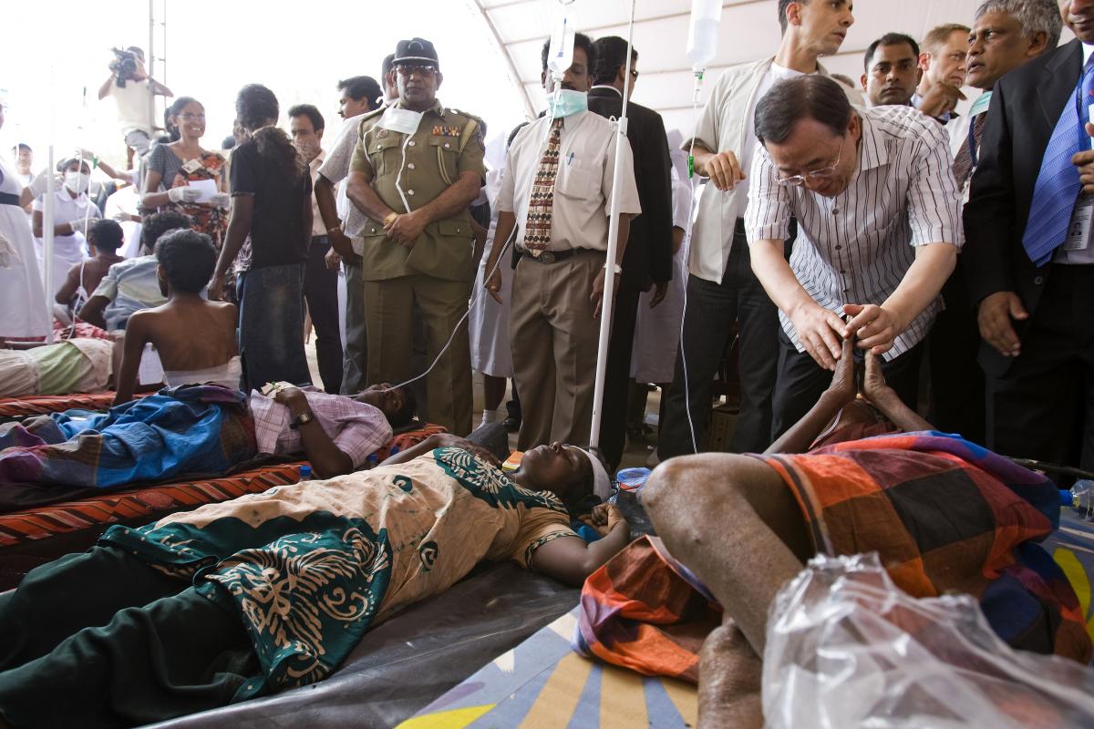 Ban Ki-moon visits Sri Lanka in May 2009, a week after the end of the civil war. 250,000 were