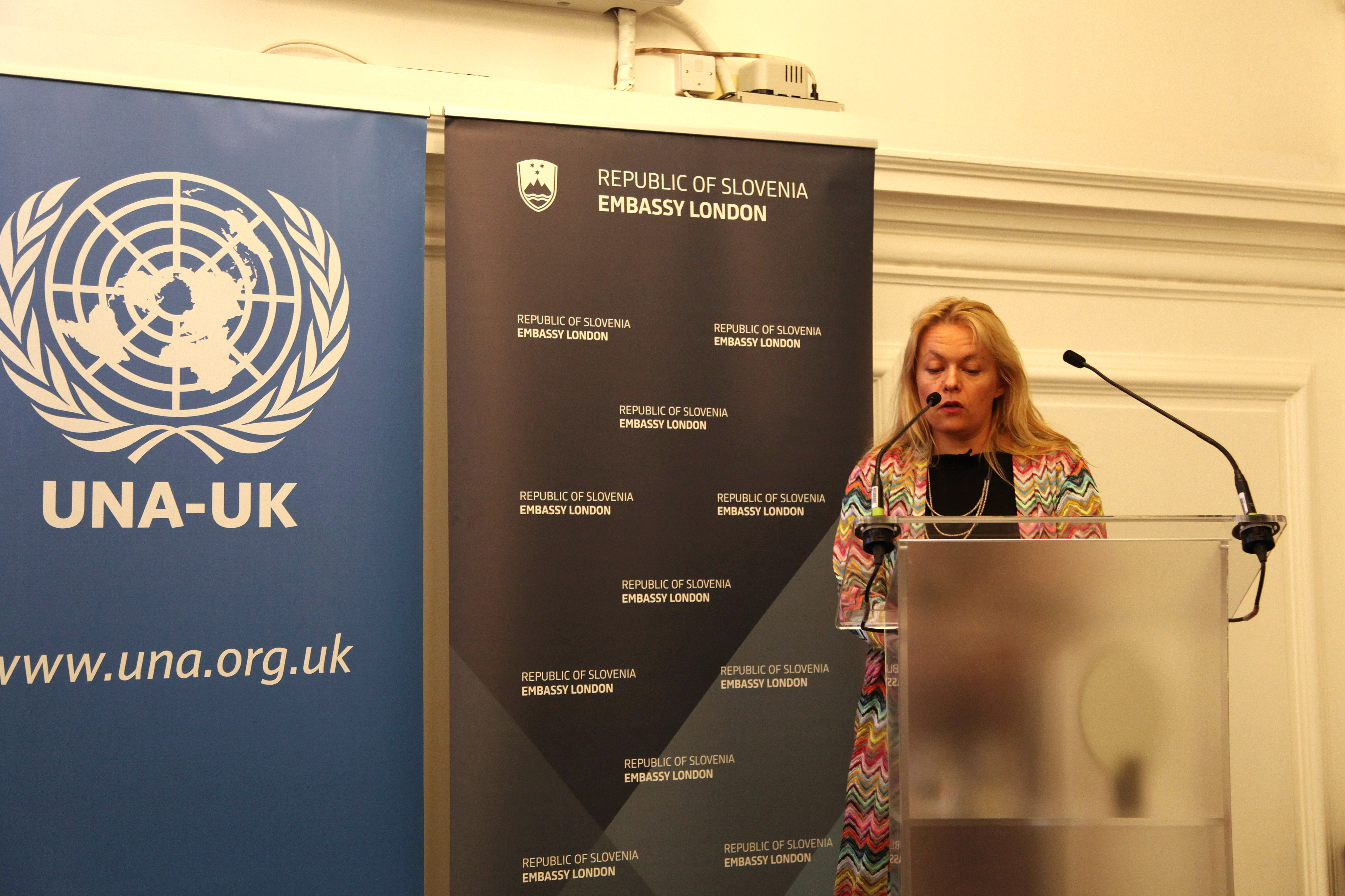 UNA-UK was delighted to partner with the Slovenian Embassy for this year’s event which marked the 80 anniversary of the UN Charter coming into force. The reception was held at Methodist Central Hall where the first UN General-Assembly met in January 1946.