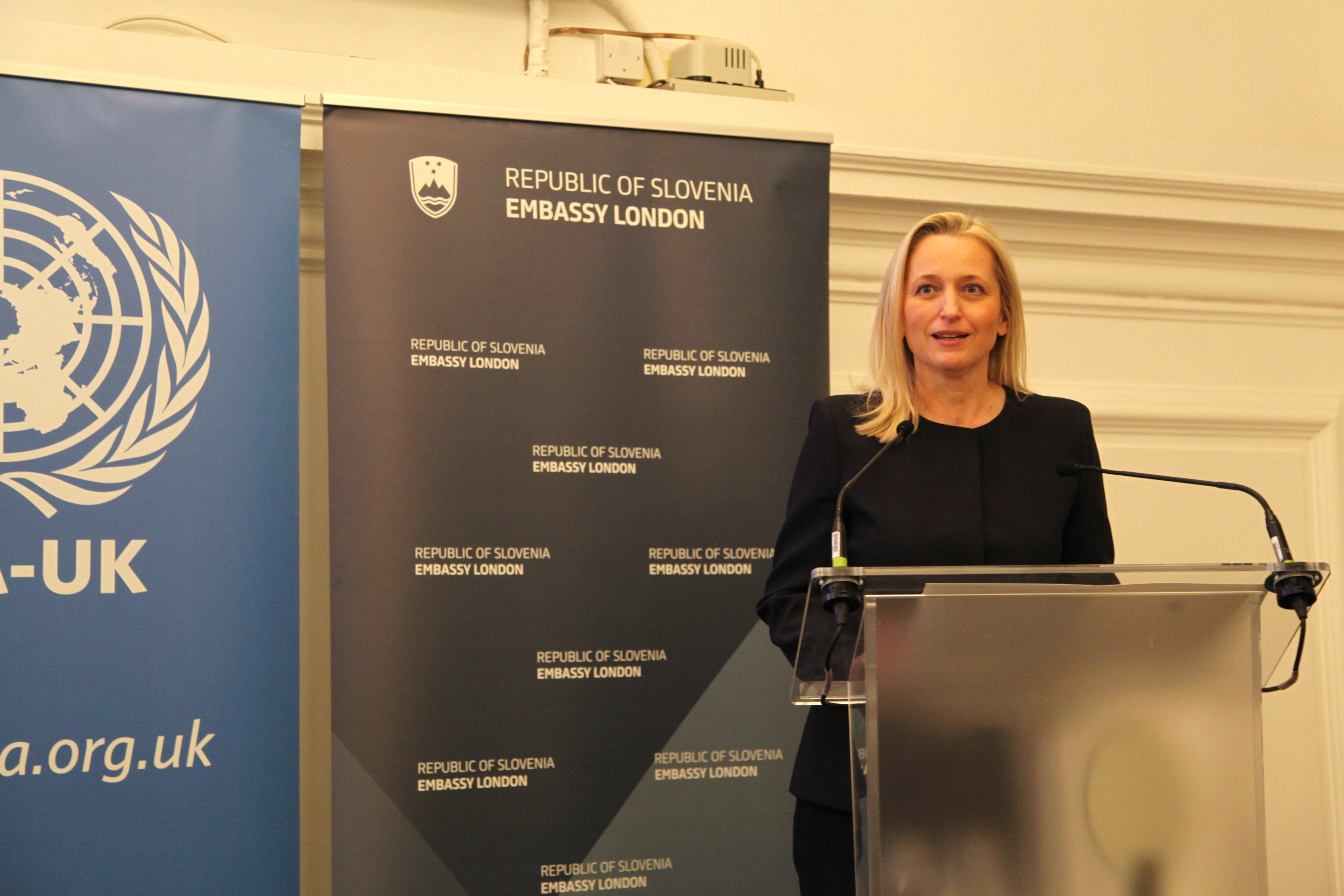 Ambassador Sanja Štiglic, representative of Slovenia to the United Kingdom, highlighted the need to reclaim the founding hopeful vision of the UN and champion humanitarian principles: