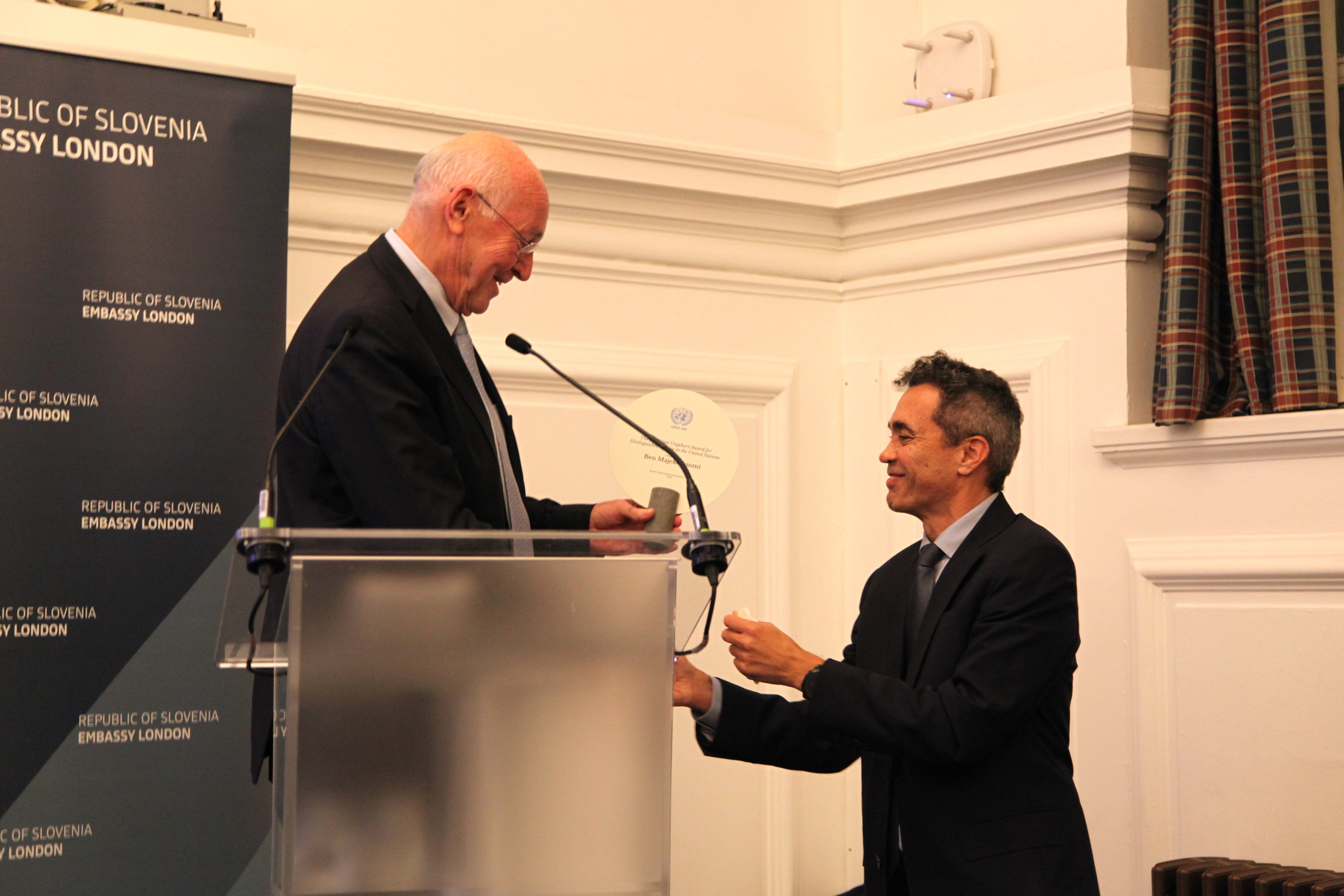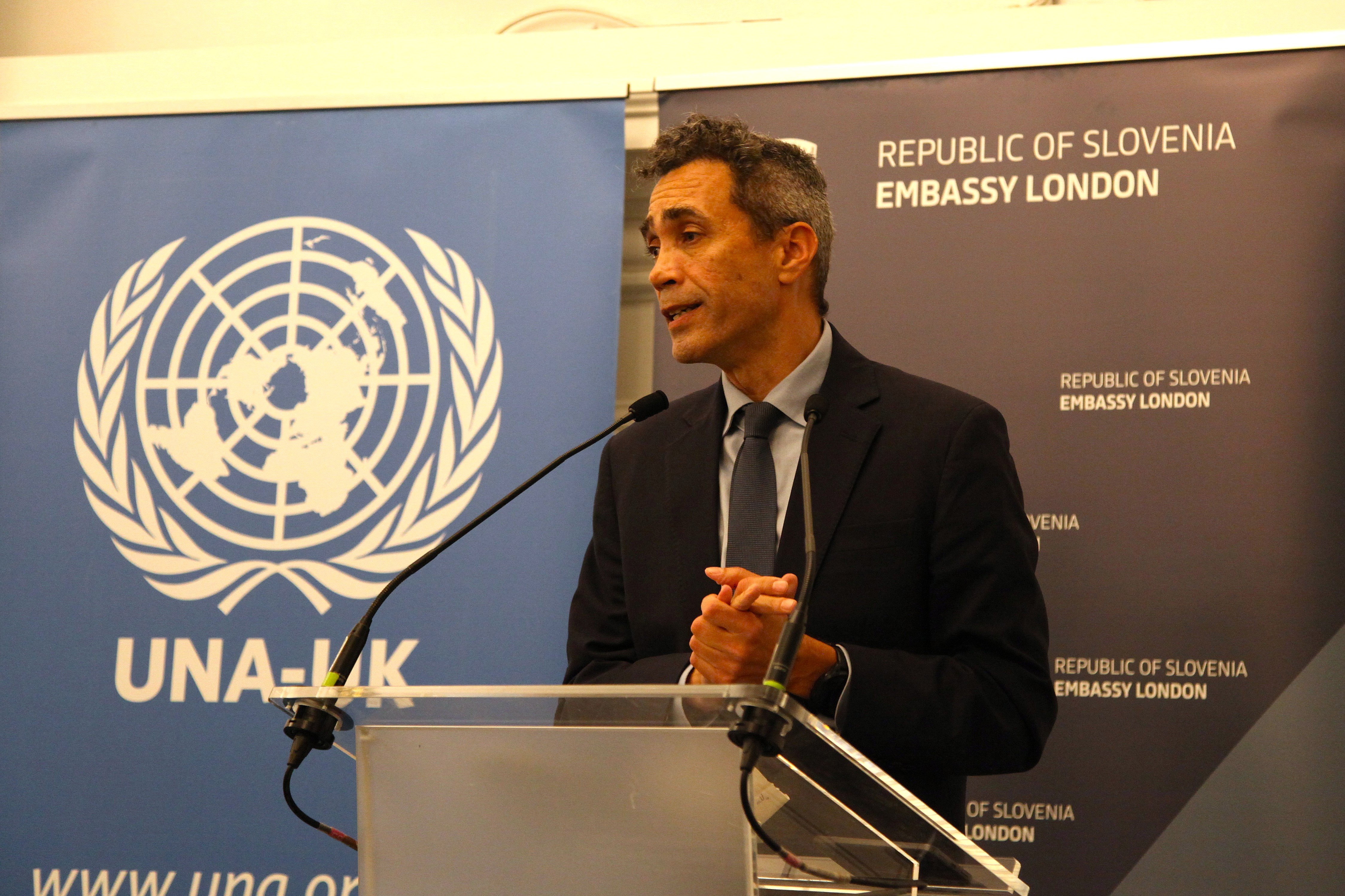 On Thursday 23 October, UNA-UK hosted its annual UN Day event, this year in partnership with the Embassy of Slovenia. UNA-UK was delighted to present the Sir Brian Urquhart Award for Distinguished Service to the UN to Ben Majekodunmi, Chief of Staff at the United Nations Relief and Works Agency for Palestine Refugees in the Near East (UNRWA).