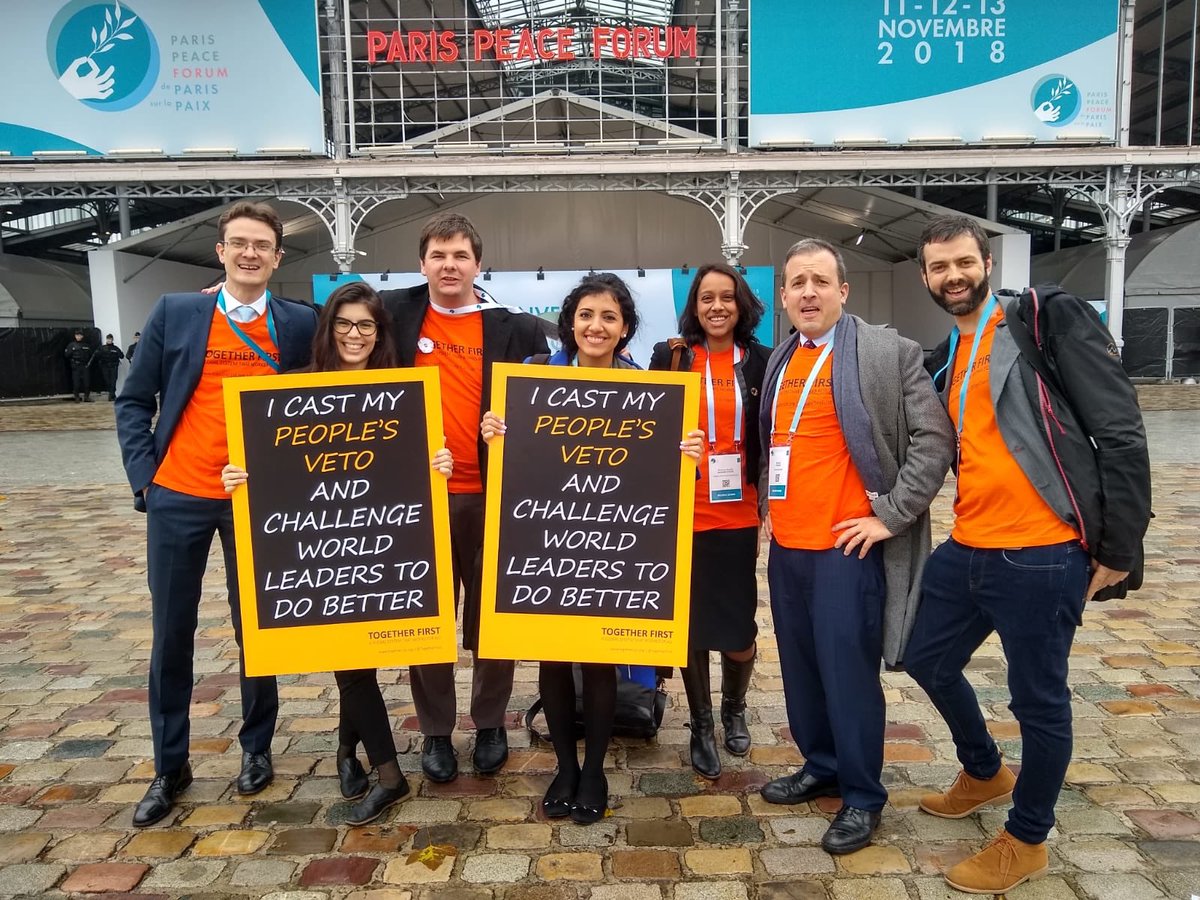 At the Paris Peace Forum, three members of UNA-UK staff worked with other members of Together First to launch the movement and collect signatures for our first campaign action, which invited people to cast their 'veto' about the state of the world, and demand better from their leaders. The team managed to sign up hundreds of supporters, including three Nobel Peace Prize Winners, and delivered the campaign's message through events, outreach, social media and media interviews. You can see more of our activities in the gallery below.