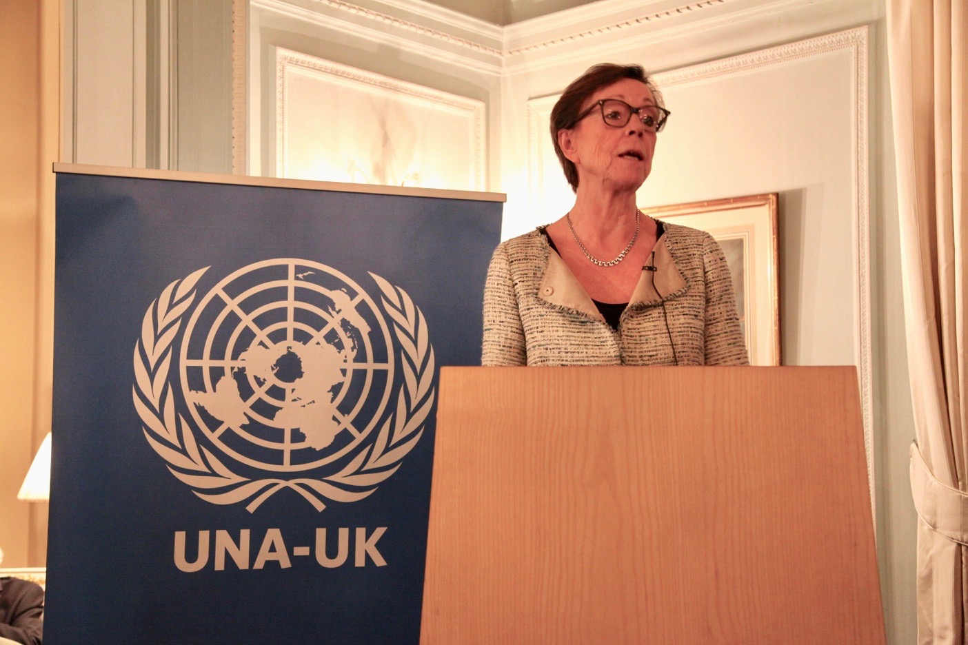 Before the presentation of the Sir Brian Urquhart Award, State Secretary to the Minister of Foreign Affairs, Annika Söder, gave a keynote speech in which she recognised the work of UNA-UK, and the success of its "1 for 7 Billion" campaign that led to a more transparent process when UN Secretary-General António Guterres was appointed.
